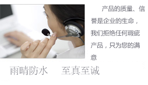 產品的質量、信譽是企業的生命,一方面我們雨晴全體員工以“誠信”為基石,在產品服務上拒絕任何瑕疵,以先進的技術在競爭中取勝,以真誠待人的態度,熟練的業務技能和規范的服務流程......[詳情]